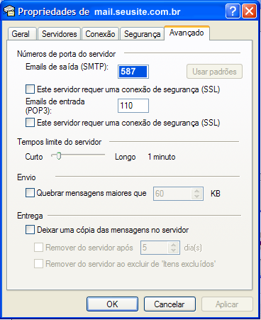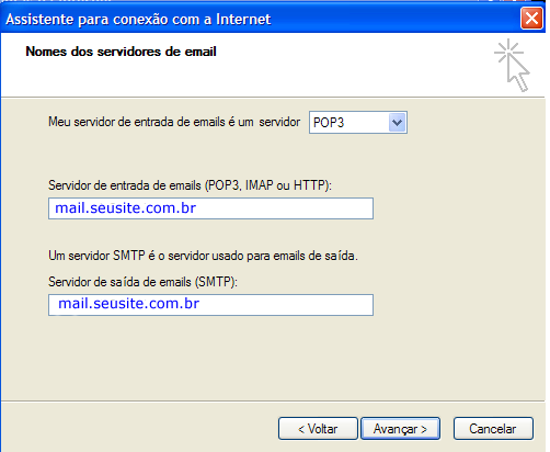 4- Em endereço de email coloque seuemail@seusite.com.br e avance de novo